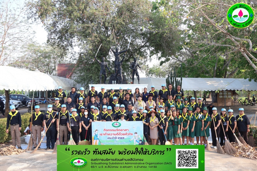 9 มีนาคม 2569 เวลา 08.00 น.องค์การบริหารส่วนตำบลสีบัวทอง ดำเนินกิจกรรมจิตอาสา เพื่อสร้างจิตสำนึกในด้านจิตสาธารณะ หรือจิตอาสาให้แก่พนักงาน สมาชิกอบต.ประชาชน เพื่อแสดงออกถึงพฤติกรรมของพนักงานในการช่วยเหลือสงคมและสร้างความดีในหมู่คณะ เพื่อได้เสริมสร้างความรู้ คุณธรรม จริยธรรมและปฏิบัติตนตามหลักพระพุทธศาสนาได้อย่างเหมาะสม