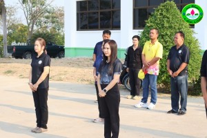 รองถวิล นำคณะผู้บริหาร สมาชิกสภา ข้าราชการ พนักงานส่วนตำบล พนักงานจ้างเหมาบริการ เข้าแถวเคารพธงชาติ (ทุกวันจันทร์)