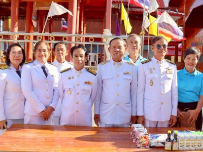 อบต.สีบัวทอง เข้าร่วมพิธีพิธีถวายเครื่องราชสักการะและวางพานพุ่ม และจุดเทียนถวายพระพรชัย