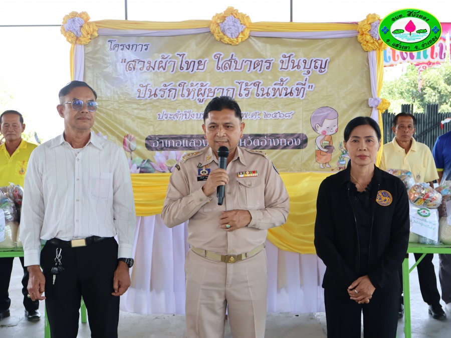20 มกราคม 2568 เวลา 13.30 น. อำเภอแสวงหา ร่วมกับ องค์การบริหารส่วนตำบลสีบัวทอง มอบถุงยังชีพ ให้กับผู้ยากไร้ในพื้นที่ตำบลสีบัวทอง ตามโครงการ "สวมผ้าไทย ใส่บาตรปันบุญ ปันรักให้ผู้ยากไร้ในพื้นที่" ประจำปีงบประมาณ 2568 จำนวน 89 ชุด