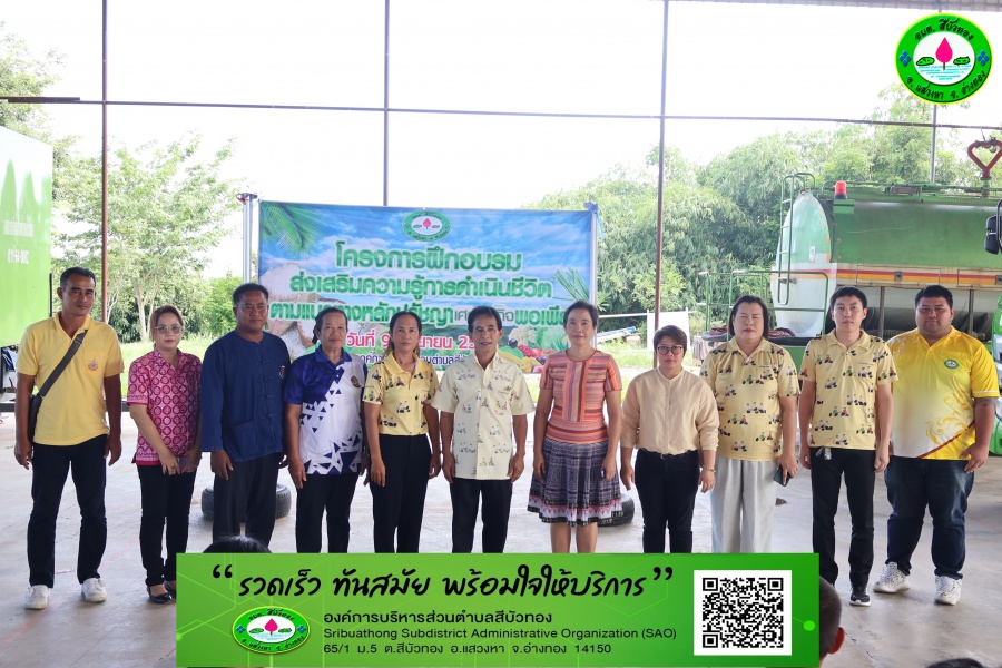 9 กันยายน 2568 เวลา 09.00 น. องค์การบริหารส่สวนตำบลสีบัวทอง จัดทำโครงการฝึกอบรมส่งเสริมความรู้การดำเนินชีวิตตามแนวหลักปรัชญาเศรษฐกิจพอเพียง ตามแนวพระราชดำริ ของรัชกาลที่ 9 ทรงประทานแนวทางการดำเนินชีวิตแก่ชาวไทยไว้ เพื่อพัฒนาความเป็นอยู่ให้ดีขึ้น คำนึงถึงความพอประมาณ ความมีเหตุผล การสร้างภูมิคุ้มกันที่ดีในตัวเอง