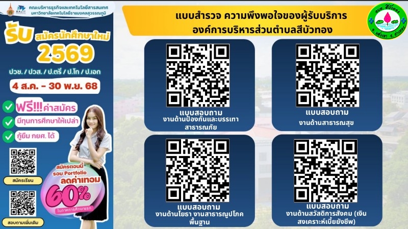 | 1 | แบบสำรวจความพึงพอใจของผู้รับบริการ อบต.สีบัวทอง | 166 KB. | 12 |