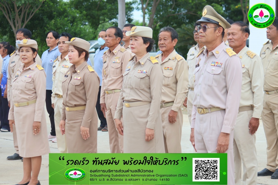 โดยมี นายกิตติ์ บุญประสพ นายกองค์การบริหารส่วนตำบลสีบัวทอง พร้อมด้วย นางสาวสุวรรณ์ แจ่มกระจ่าง กำนันตำบลสีบัวทอง คณะผู้บริหาร ผู้ใหญ่บ้าน สมาชิกสภา ผู้ช่วยผู้ใหญ่บ้าน แพทย์ สารวัติกำนัน ข้าราชการ พนักงาน อบต.สีบัวทองเข้าร่วมกิจกรรม ณ บริเวณหน้าเสาธง องค์การบริหารส่วนตำบลสีบัวทอง